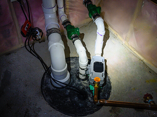 Sump pumps are installed in basement and crawlspace areas to prevent flooding in low-lying areas. They collect water indoors and then pump it to outdoor areas to reduce water pooling.